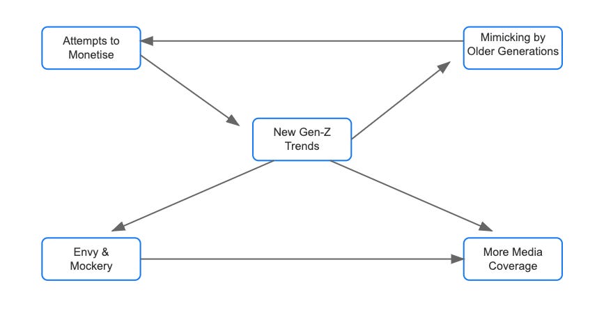 This brings me to the 2nd dominant attitude towards Gen Z: mimicking the shit out of them.